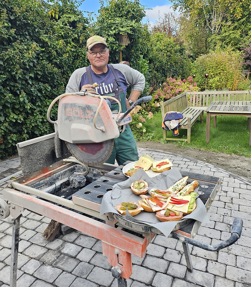 Heute bin ich Landschaftsgärtner und arbeite gerne draußen an unterschiedlichen Gartenprojekten. Die Abwechslung im Job gefällt mir besonders, und die nötigen Maschinen stehen immer bereit.